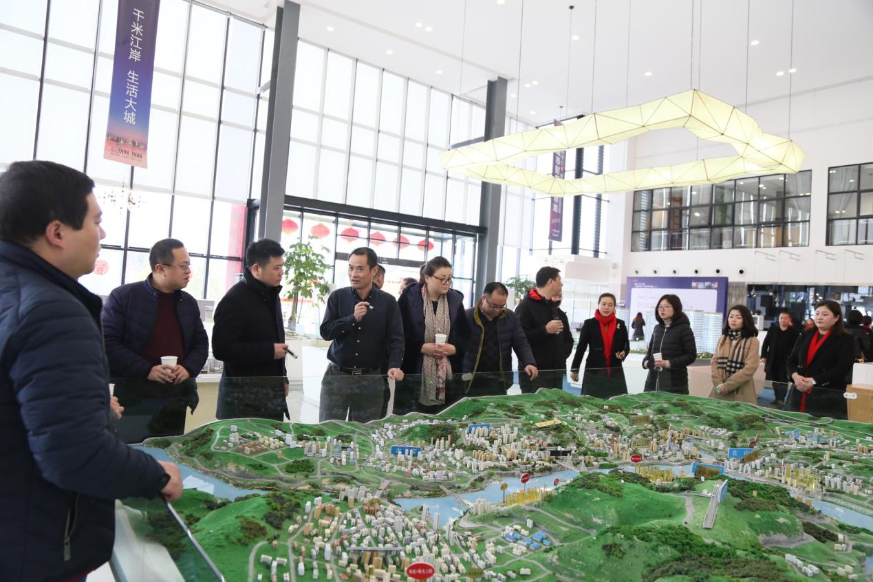 在长江之星售房部,李董事长借助沙盘模型,就城市规划,特别是海成集团各项目在城市中的定位和建设效果,进行了详细的解读,石县长对海成集团在万州城市建设中发挥的作用十分认同。