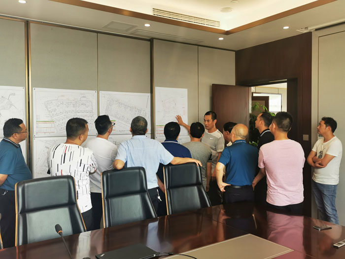 董事长李海首先为调研小组介绍各个项目的标高和地块高差,海成是如何在产品研发和工程细节上克服巨大的高差,因地制宜开发;展示了通过高清摄像机,实时查看各个在建工程的情况,调研小组对海成在项目安全文明施工、工程质量的严谨频频点赞。