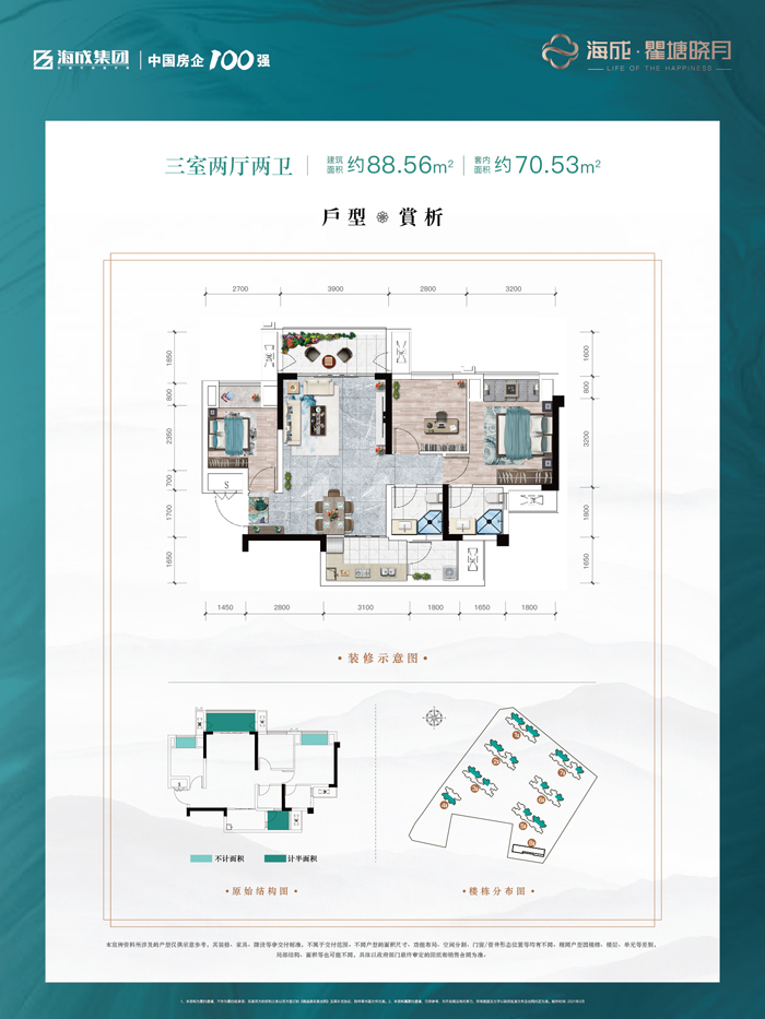 主力户型:88㎡三室两厅竖厅洋楼/98㎡三室两厅横厅洋楼